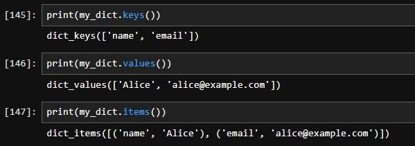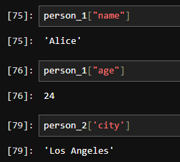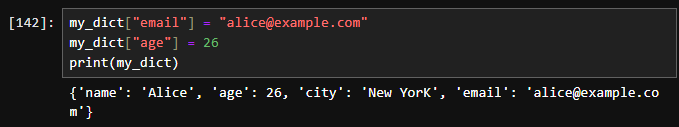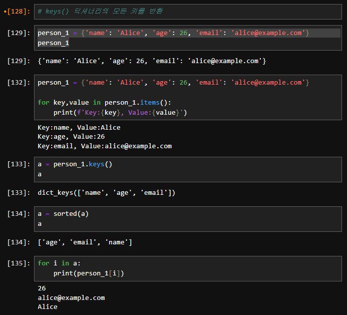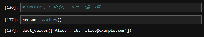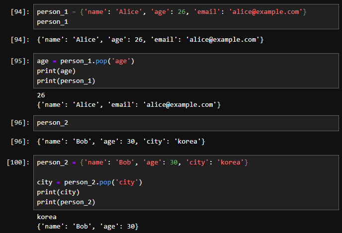 - 딕셔너리(dict): 키-값 쌍의 집합입니다.